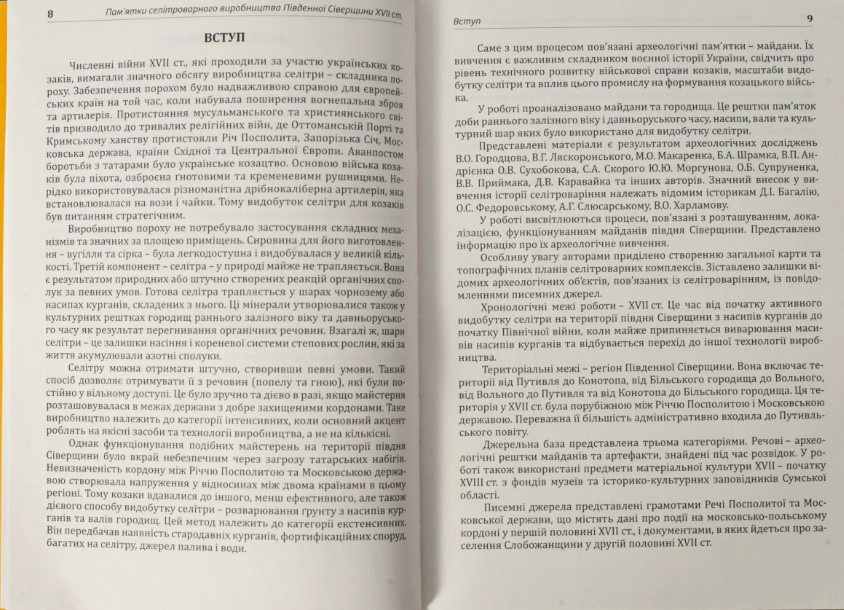 Археологія Сумщини. Пам’ятки селітроварного виробництва Південної Сіверщини XVII ст.»