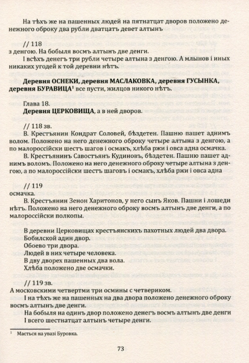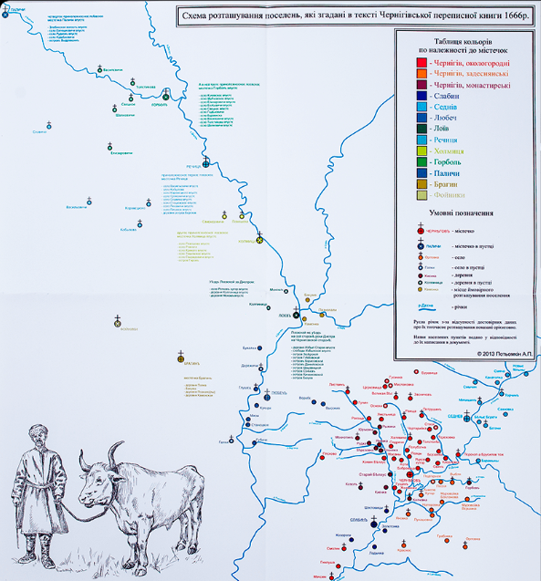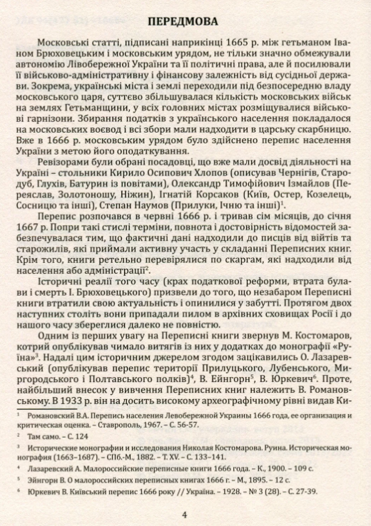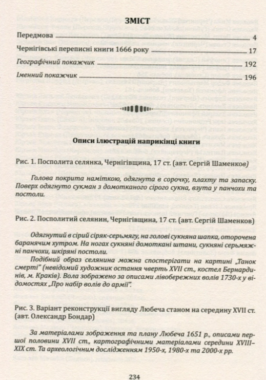 Публікація пам’ятки 17-го століття — Чернігівської переписної книги 1666-го року. Оригінал документа знаходиться в Російському державному архіві давніх актів (м. Москва). Перепис охопив значну частину сучасної Чернігівської області та прилеглу частину Білорусі. Включає в себе як поіменні згадки людей, так і опис їх тяглового господарства, зазначено розмір оподаткування та інші статистичні дані.