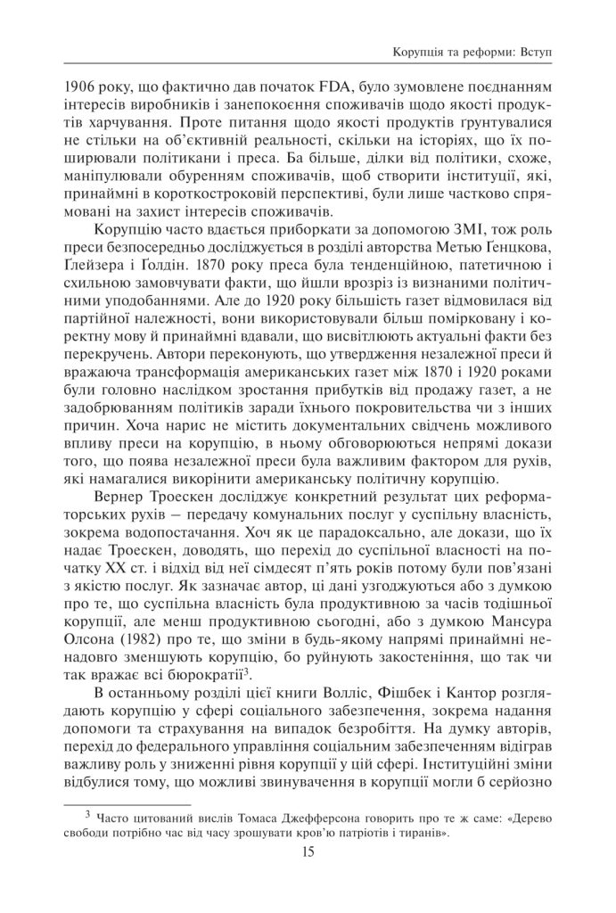 США – одна з найменш корумпованих країн світу. Але у ХІХ столітті шахрайство та корупція в Америці мало чим відрізнялося від найкорумпованіших країн сучасності, бо муніципальна влада та хитрі підприємці знаходили все нові способи обкрадати платників податків та ошукувати інвесторів. Автори досліджують цей туманний період історії країни у пошуках кращих методів боротьби з корупцією в сучасному світі. Автори вивчають масштаби і наслідки шахрайства і корупції, а також чинники, що зрештою призвели до поступового послаблення цих явищ в Сполучених Штатах. Вони показують, що для зниження рівня корупції спрацьовували різні підходи, як-от дерегуляція, зокрема, «вільний банкінг» у 1830-х роках. У 1930-х роках корупцію вдалося приборкати силами нової федеральної бюрократії, що замінила місцеві адміністрації у наданні допомоги. Ще одним стримуючим чинником для корупції стала незалежна преса, яка пильно стежила за урядом і бізнесом. Ці та інші аспекти американської історії, проаналізовані в книжці, роблять її незамінним джерелом інформації для всіх, хто цікавиться проблемою подолання корупції.