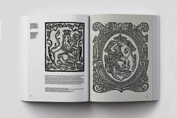 Під час тогочасної дискусії, який із наших історичних символів гідний стати головним знаком новітньої української державності, «претендентами» передусім були три: галицький золотий лев, що спинається на скелю; київський архистратиг Михаїл, який на зламі XIX–XX ст. став сприйматися, як герб Наддніпрянської України; козак із мушкетом із часів Гетьманщини, який уже у XVIII ст. трактували як «національний герб». Про кожного з них в альбомі – по декілька десятків сторінок.