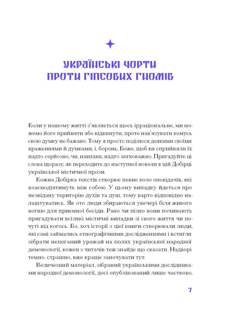 Казка, переплетена з реальністю, повір’я, загублене в історії, магія, захована в оповіданні. Наші класики створили тексти, що закохують в атмосферу української містичної ночі. Тут у темряві ховається нечисть усякої вдачі та вроди, вона запрошує перегорнути ще одну сторінку легендарію українців.