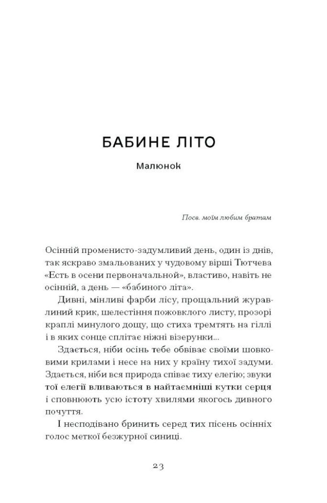 Максим Рильський знаний насамперед як поет і перекладач, та мало кому відомо про його прозовий доробок. Оповідання раннього періоду — це переважно ліричні етюди, пройняті елегійними настроями, хоча інколи й романтично забарвлені. Це й літературні казки, і малюнки, втілені в слова, і враження від зачарування природою та великоднім ранком, а також потуга епічного полотна «Веселі брати», яке постало зі споминів про гімназійних товаришів. Добірка містить есеї із циклу «Вечірні бесіди», спогади про сучасників, оповідки й бувальщини про дозвілля, збуте на полюванні й рибальстві, міркування про театр і культурні здобутки. А в мандрівних нотатках переважає ліричне сприйняття світу незнаних країв, враження від пейзажу й архітектури, гастрономічні чарунки, а також тепло зустрічей зі світовими митцями, зокрема від гостини в Луїса Арагона та подив від споглядання картини «Голуб миру» Пабло Пікассо.