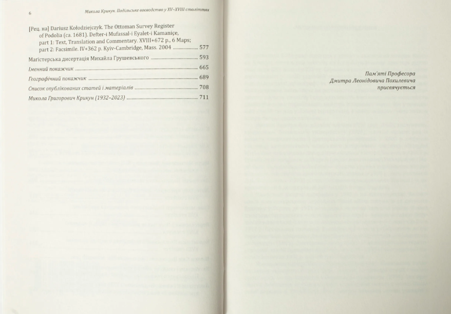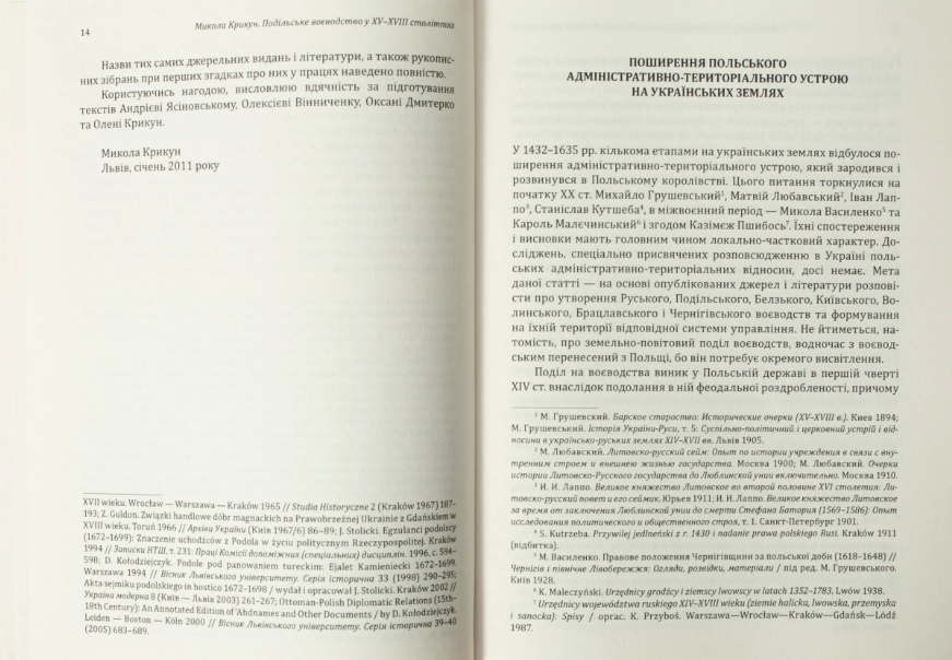 Збірник включає дослідження, опубліковані в різних виданнях, деякі — в доопрацьованому вигляді, інші — з виправленнями й уточненнями. Вони засновані головним чином на джерелах, виявлених у рукописних збірках Львова, Києва, Кракова, Варшави, Москви і дають уявлення про різні аспекти історії Подільського воєводства, яке існувало від 30-х рp. XV ст. до 1793 р., — його кордони, адміністративно-територіальний устрій, склад і структуру поселень, міграції населення та колонізаційні процеси, житловий фонд Кам’янця-Подільського.