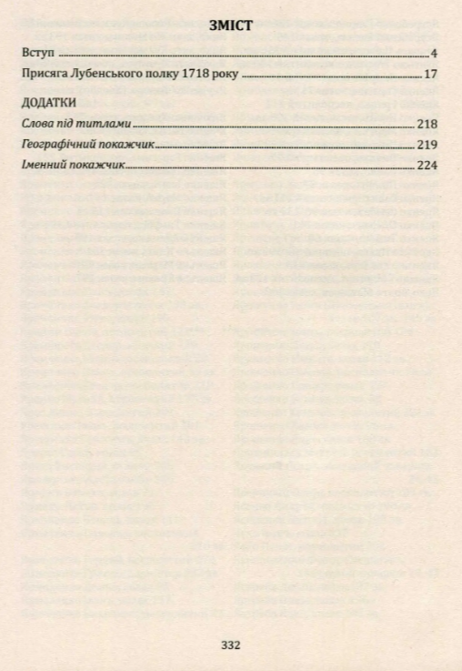 Публікація присяжних списків жителів Лубенського полку Гетьманщини за 1718 рік. Книга містить поіменні реєстри різних тогочасних станів — козаків, старшини, посполитих селян, міщан, духовенства.