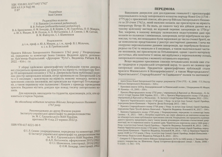 Присяга Війська Запорозького Низового 1762 року (Друге видання)